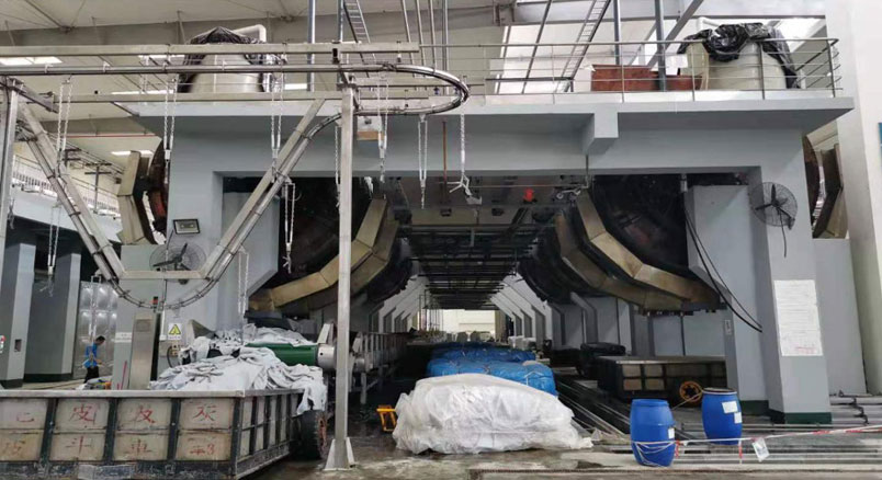 GZGCL With the higher and higher requirements of national tanning enterprises, the design and processing requirements of tanning machinery are also gradually improved. This requires tannery machinery processing higher efficiency, lower energy consumption, automation, intelligent, higher safety, reduce the number of operators and labor intensity. To realize the automation, intelligence and information upgrade of tannery enterprises. The automatic conveying line produced by our company has leather conveying (into and come out of the drum), automatic water supply, automatic chemical material feeding system; Automatic control system of leather production and processing, on-line detection and control technology of leather production process; Tanning waste liquid circulation system and supporting testing equipment. 1. Fur conveyor line( into the drum) The conveyor belt transports the leather directly from the fur storehouse to the drum that needs to be put into production, which can be weighed automatically. After reaching the specified weight, the drum door closes, and the conveyor belt transports the leather to other drum according to the set program.
