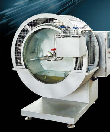 On the end of the drum is mounted with the toughened glass to enable the visual observation of the straining state inside the drum,which has such merits as resisting the mechanical impact,heating shock and being free from deformation or color changing.
