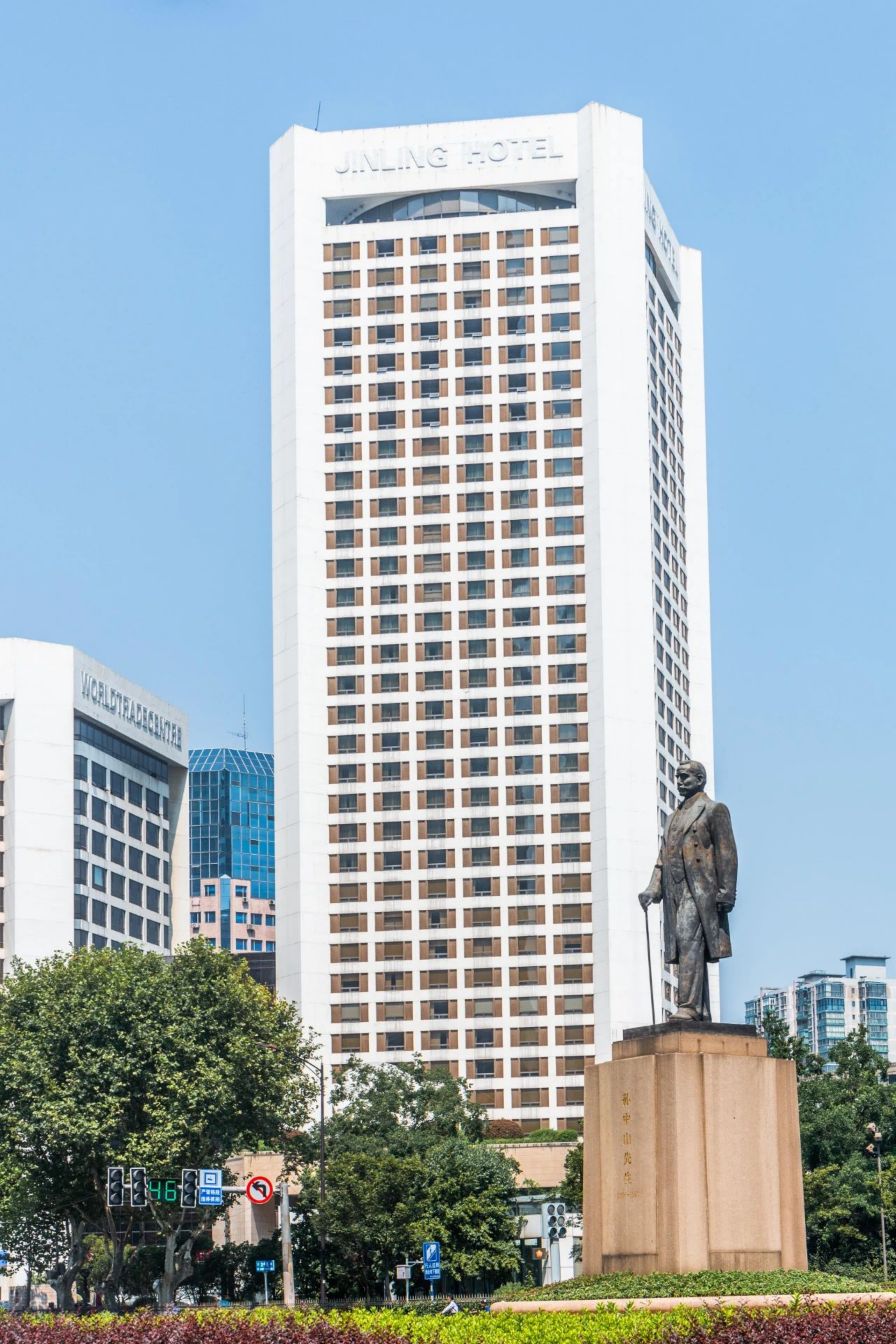 承建于1980年6月開工,1983年10月竣工,建筑面積48640平方米,建筑總高度110米,共37層。涵蓋給排水、電氣、空調(diào)、智能化、電梯等系統(tǒng)。建成后的10多年是中國第一高樓,南京的標(biāo)志性建筑;中國第一座大型室內(nèi)停車場;中國第一部高速電梯,中國第一個高樓直升機(jī)停機(jī)坪。接待了40多批次國家元首和國際政要,是中國第一家由中國人自己管理的大型現(xiàn)代化酒店。