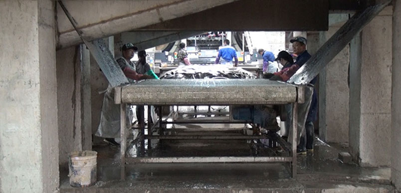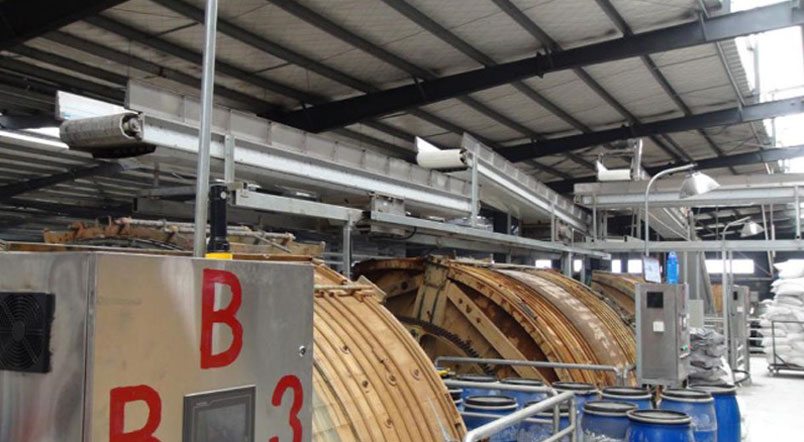 GZGCL 隨著對制革企業(yè)的要求越來越高,制革機(jī)械的設(shè)計(jì)加工要求也逐步提高。要求制革機(jī)械的加工更高效率、更低能耗,操作自動化、智能化,安全性更高,減少操作人員數(shù)量及勞動強(qiáng)度。實(shí)現(xiàn)制革企業(yè)自動化、智能化、信息化升級。 我司生產(chǎn)的自動化輸送線,有皮革輸送進(jìn)出鼓、自動供水、化料自動供料系統(tǒng);制革生產(chǎn)及加工自動化控制系統(tǒng),制革生產(chǎn)過程在線檢測與控制技術(shù);制革廢液循環(huán)系統(tǒng)及配套檢測設(shè)備。 一、毛皮進(jìn)鼓線 輸送帶將皮從毛皮庫直接輸送至需要投產(chǎn)的轉(zhuǎn)鼓,可自動稱重,到達(dá)指定重量后轉(zhuǎn)鼓鼓門關(guān)閉,輸送帶按設(shè)定的程序?qū)⑵ぽ斔椭疗渌D(zhuǎn)鼓。 二、回鮮皮自動出鼓線 完成浸水后的皮張從轉(zhuǎn)鼓中卸出,并自動掉落到出鼓線上,出鼓線將皮張輸送到指定地點(diǎn),用夾皮掛晾線輸送至去肉機(jī)高臺,自動掉落至去肉機(jī)進(jìn)行皮張去肉。 三、入鼓膨脹和肉渣輸送線 去肉后的皮張自動滑落至膨脹入鼓線上 (由于各制革廠工藝的不同,有些制革廠在此再加一個(gè)自動輸送平臺用于修邊),輸送線自動完成計(jì)重后送入到指定轉(zhuǎn)鼓浸灰膨脹;從皮張上刮下來的肉渣由肉渣輸送線送至肉渣壓水機(jī)。 四、灰皮出鼓線 浸灰膨脹完成后轉(zhuǎn)鼓將皮張倒入膨脹出鼓線上,出鼓線將皮輸送至指定區(qū)域,用夾皮掛晾線將皮輸送至高臺去肉機(jī)的上部,自動掉落在去肉機(jī)的供料機(jī)構(gòu)中進(jìn)行去肉。肉渣輸送線將肉渣輸送至肉渣壓水機(jī)。 五、輸送平臺 灰皮去肉后自動掉落到輸送平臺上,操作工完成對皮張的修邊和碼皮,碼整齊的灰皮被輸送至剖層機(jī)的工作臺前,操作工進(jìn)行剖層皮革。 六、入鼓鞣制線 完成剖層后的頭層皮由自動拉皮裝置從剖層機(jī)拉出掉落至鞣制入鼓線上,輸送線對皮張自動計(jì)重并送往指定的轉(zhuǎn)鼓進(jìn)行鞣制,到達(dá)指定重量后轉(zhuǎn)鼓鼓門關(guān)閉,輸送帶按設(shè)定的程序?qū)⑵ぽ斔椭疗渌D(zhuǎn)鼓。 七、二層皮輸送線 經(jīng)剖層后的二層皮自動掉落至二層皮輸送線上,根據(jù)客戶的不同要求可以輸送至指定的區(qū)域。 制革自動化生產(chǎn)流水線是具有鮮明個(gè)性化的產(chǎn)品,要根據(jù)各公司的產(chǎn) 量、工藝、場地、需求等等來總體規(guī)劃進(jìn)行設(shè)計(jì),根據(jù)本公司多年來的實(shí)踐新建制革廠時(shí)一定要盡早納入,統(tǒng)籌考慮后就可做得非常理想。受去肉與剖層機(jī)生產(chǎn)效率的限制一條流水線以每天產(chǎn)量在2000張左右為宜,制革水廠一條流水線有10多名熟練工人操作即可滿足,人力資源節(jié)省三分之一。 傳送帶的主要技術(shù)參數(shù)及配置 1、帶子輸送速度為24m/min。 |