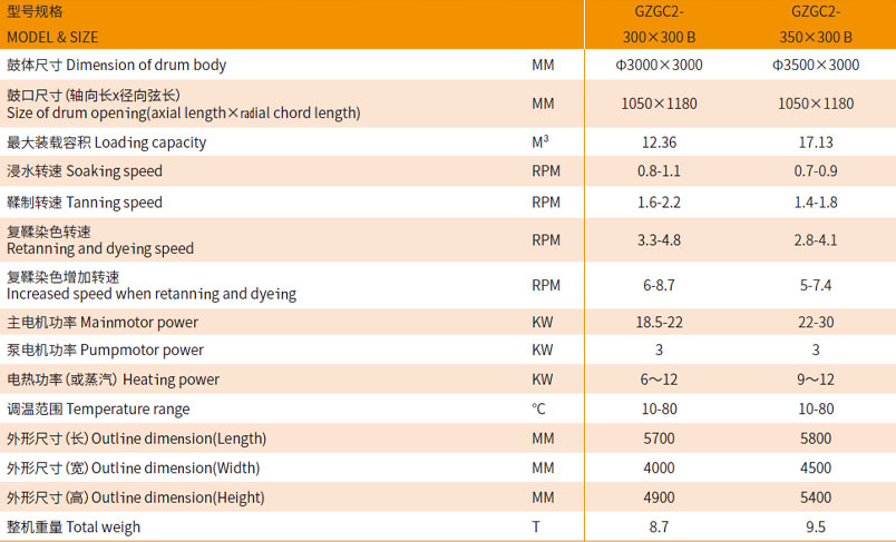 GZGC2-B 主要功能與特點 使用該轉鼓可以減少浸水、鞣制、染色工序用水量,可以減少化工原料用量。鼓內采用新式結構,在同樣工藝時間內使皮張 更柔軟、染色更均勻。比普通轉鼓多裝載30%以上,裝載總量可以達到轉鼓容積的60%—70%。 1、轉鼓鼓體采用不銹鋼板材制作,鼓體內外層之間用優質保溫材料填充。轉鼓另一端裝有含多種功能的交換器系統,鼓內有單方向旋轉自動液體循環系統。為方便操作,在機器右側裝有輔助控制電器箱。 2、轉鼓一側配置重錘排氣閥,從而確保鼓體在工作過程中始終鼓內無壓力。 3、鼓體內裝有帶傾斜度的長檔板,這種擋板機械作用大,特別適合牛皮加工 4、為縮短轉鼓清洗時間,在鼓體一側增加了兩組手動排水裝置。 5、傳動系統:電動機經轉鼓專用減速箱變速后,再通過齒輪帶動鼓體轉動。減速箱的主動軸上配置了氣動剎車裝置。 6、電氣控制系統:采用變頻調速、PLC電路控制。 主要技術參數 |